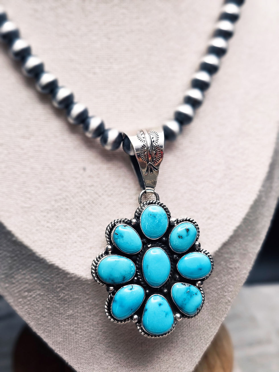 Navajo Kingman Turquoise Squash Blossom Necklace