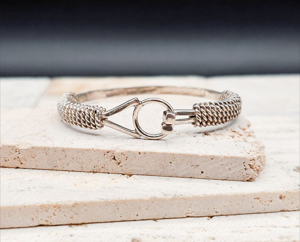 TAXCO Sterling Silver Rope Braid Hook Clasp Bracelet