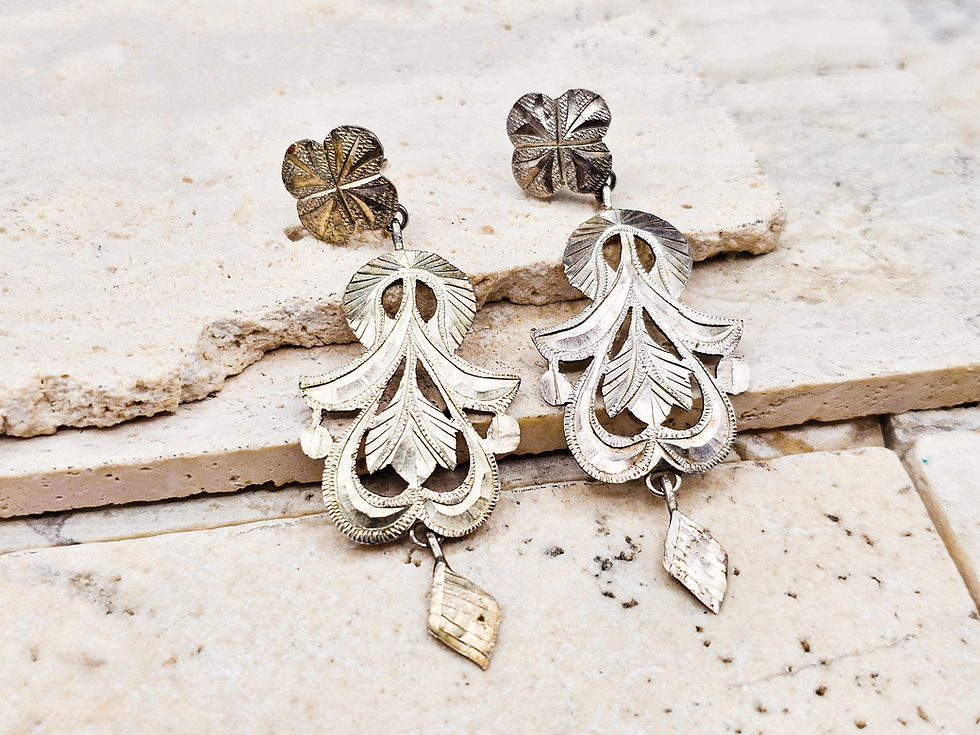 Vintage Victorian Revival Sterling Silver Etched Dangle Drop Earrings 2.5”