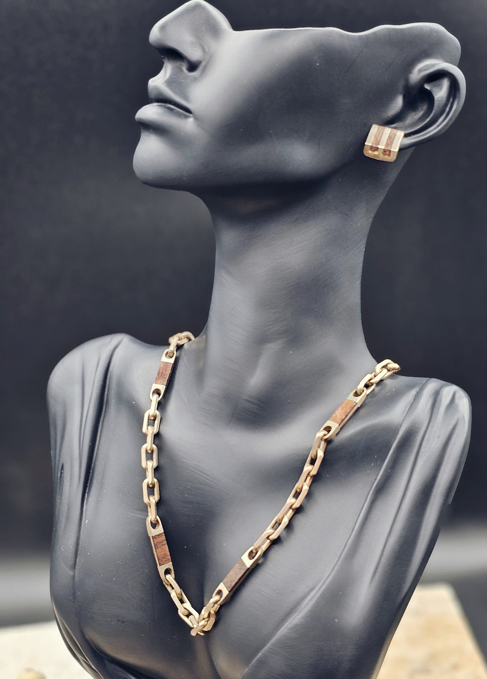 Vintage Signed GUCCI Sterling Silver and Exotic Wood Necklace & Earrings Set