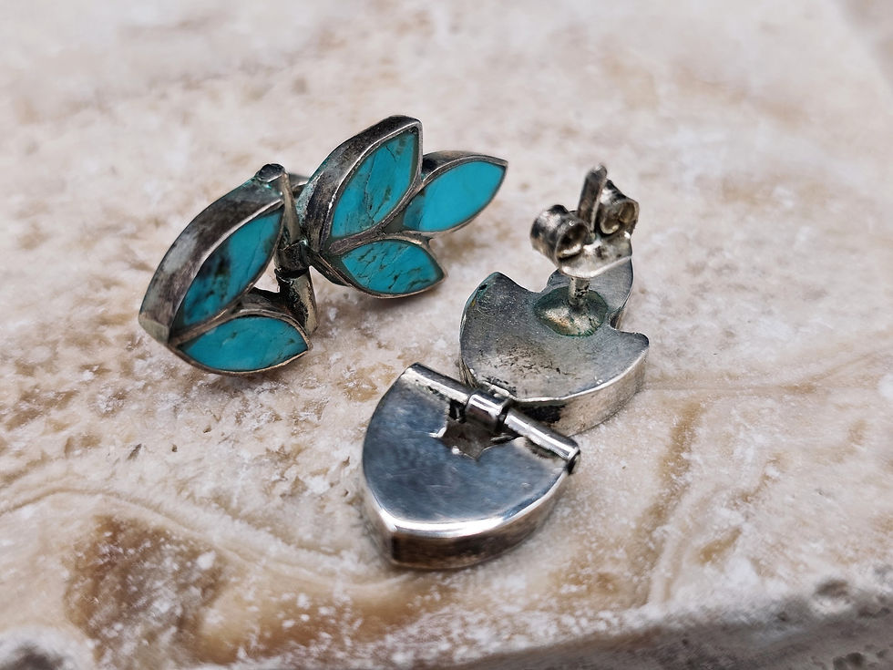 Vintage Sterling Silver Hinged Dangle Earrings with Flush-Set Turquoise