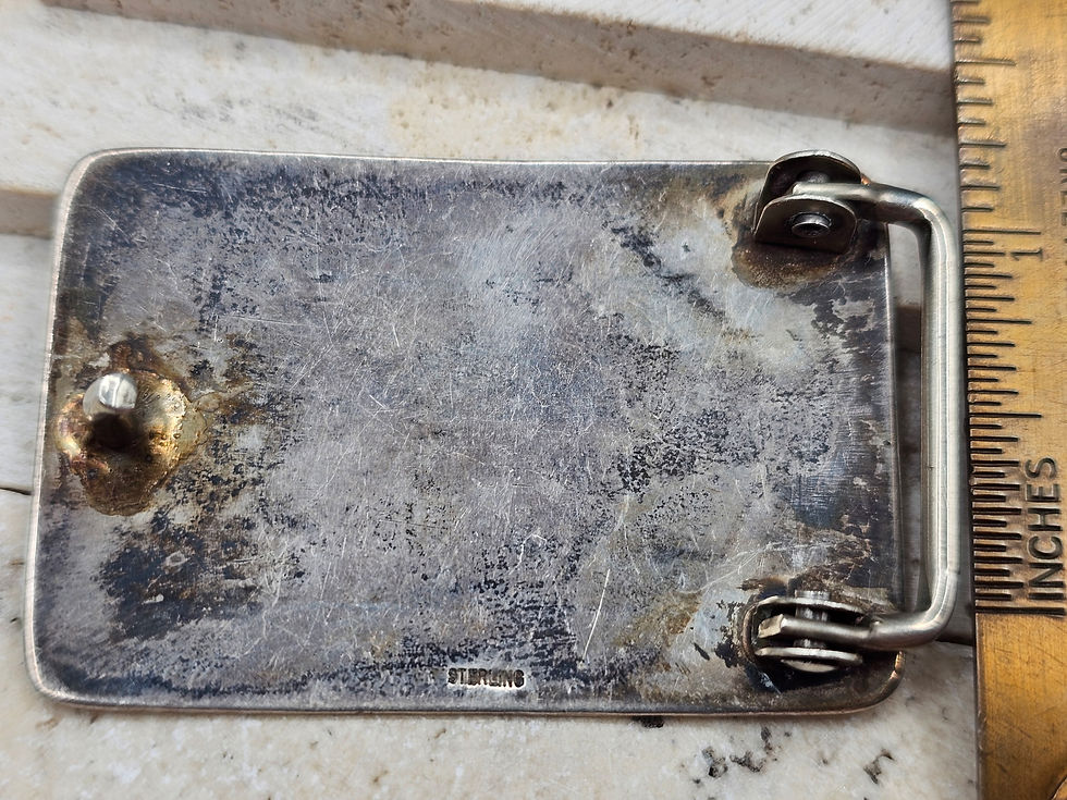 Vintage Native American Sterling Crushed Inlay Belt Buckle